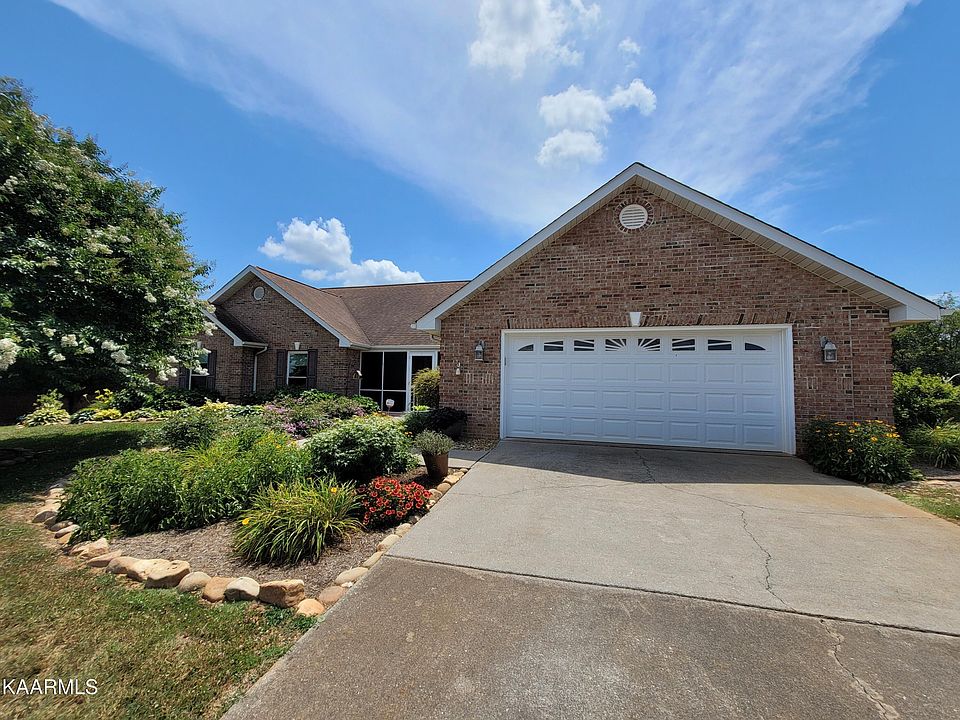 Stunning Mountain View All Brick Ranch-Style Home situated on approx .61 Acres, featuring 3 BDRM (Split BDRM Plan), 2 BA, beautiful Sunroom, Plantation Shutters, Hardwood Flooring & Tile, Screened In Front Porch & Screened-In Back Porch, situated on level lot w/immaculate landscaping. This Home has spacious Kitchen w/Breakfast Table Area, Dining Room, Open Cathedral Ceilings in Living Room & Primary Bedroom, Custom Tile Shower (Primary BA), lg Closets, Laundry/Mud Room off of the Oversized Garage (close to the Primary Bdrm, & Foyer. Buyer to verify square footage, acreage, and schools.