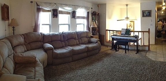 Basement is 925 sq. ft. 90% finished with laundry room, 3 bedrooms down, two bedrooms up Laminate flooring in bedrooms, kitchen, and dining room; tile in halls, stairs, and bathrooms; carpeted living room. Central air-conditioning Fully fenced large yard, with a beautiful large shade tree. Plenty of space for outdoor toys/activities. Automatic sprinklers, secondary water. TREX style back deck and stairs. Solar panels that heat an extra 50 gallon water tank; you never run out of hot water. Two car oversized garage Storage shed in back Neighborhood Description: Wonderful family friendly cul-de-sac, no back door neighbors, quiet but close to shopping areas, schools, and the walking path is just through the gate in the back fence. Local Schools: Roy Elementary Roy Jr. High Roy High School Exclusions: Water softener, water purifier, washer/dryer, and smoke detectors.