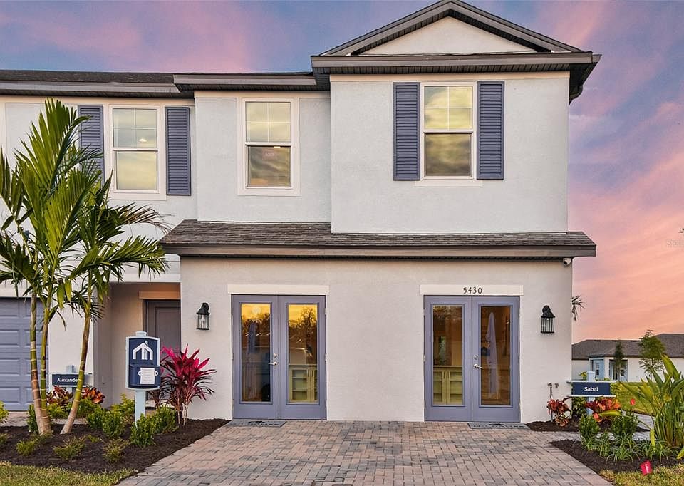 Under Construction. Welcome home to the brand new Sabal in The Palms at Trevesta. The Sabal is a spacious end-unit townhome and part of the first ever Smart Series townhomes from M/I Homes – Sarasota. Spread across 1,860 square feet, the Sabal features three bedrooms, two and a half bathrooms, and a two-car garage. Enter through beautiful landscaping right into the heart of the home. A half bath powder room is set to the side, while the main view is comprised of the kitchen, dining, and great room area. A gourmet chef's kitchen with beautiful cabinets and countertops, and elegant finishes surround a center island with a double sink. A dining area lines one wall and opens into the great room with two large windows for cascading sunshine. Head out to the enclosed lanai with Florida nature views you’ll love this special space for enjoying a morning cup of coffee or relaxing after a long day. Head upstairs where the loft, laundry room, and bedrooms reside. Two bedrooms share a full bathroom. The owner's suite is tucked towards the back of the home for extra peace and privacy. The spacious closet is a highlight, with enough space for clothes and added storage. Escape to the tranquil owner's bathroom where you'll have dual vanities and a framed shower enclosure. ****SELLER WILL ASSIST WITH $10,000 IN CLOSING COSTS WHEN USING SELLERS APPROVED LENDER****