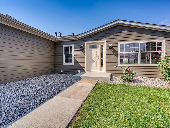 Near Regis, Berkeley and the Highlands! 5 blocks from the light rail, built in 2002! Almost everything has been updated and upgraded on this home. Newer roof, gutters, concrete siding, some windows and the sliding door were replaced in the last 3 or 4 years. Stamped concrete patio in the back; with no landscaping to take care of. Front yard has a plum tree and a peach tree and landscaped with beautiful sod and gray rocks; front yard has sprinklers. Walls and ceilings have been textured and painted. Quartz countertops in the kitchen with a undermount sink and newer stainless steel appliances. Marble tile in the family room give this home a romanesque feel. Master bath has updated counter and faucets, main bathroom has been completely remodeled with tile on the walls and granite countertops and sliding glass doors in the shower. The flooring in the bedrooms is laminate. 6 panel doors through out. Garage door is insulated and has windows. All appliances stay, house is vacant easy to show. House sits on a street that is full of non-manufactured homes also, hard to tell the difference. It's going to go fast, bring us an offer!