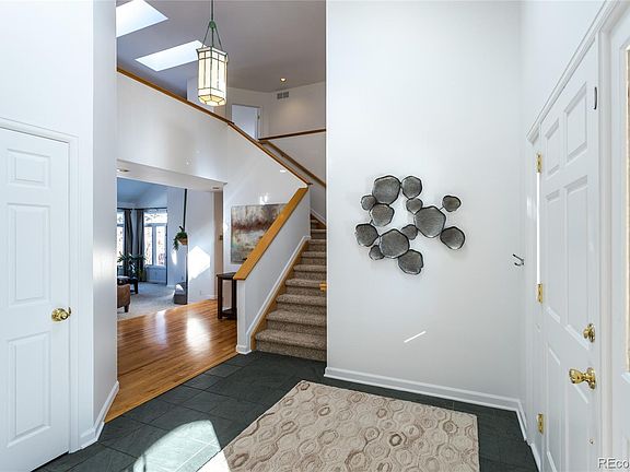 Gorgeous 2 Story on .26 acre corner lot on cul-de-sac in desirable Country Meadows! Open floor plan w/ vaulted ceilings, lg windows & skylights. Kitchen w/ wood floors, granite countertops, 42" cherry cabinets, Wolf Gas range, dbl oven, island, pantry, bar seating, SS appliances, breakfast nook w/ sliders out to back deck. Family room off kitchen w/ vaulted ceilings & fireplace. Main floor bedroom or office w/ 3/4 bath. Main level Upstairs features a lg master w/ mountain views, huge walk-in closet & 5 piece bath w/ steam shower, and jetted tub, 3 other bedrooms & full bath. Awesome rec room in basement w/ huge storage room. Mud room off the 3-car attached garage that has work bench area. Fabulous location near bike path, park, rec center, open space & trails, golf course, & easy commute to Denver/Longmont. Lg fenced backyard with deck, raised garden beds. Fresh interior paint & exterior was painted in 2019. See floor plans in additional documents