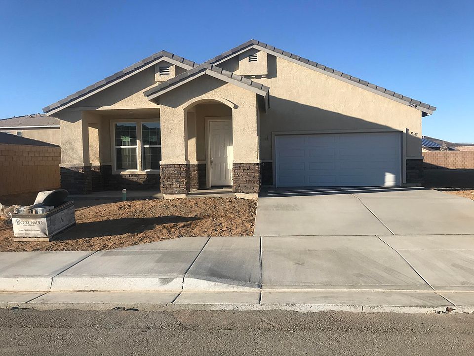 Desert Sands 2164 SQ. FT. 4 Bedrooms 2.5 Baths Est. completion Late January 2020 Solar Panels / System (Optional Wind Turbine) , Eco Building Products, Bull nose corners, Rinnai tank less water heater producing endless hot water to multiple outlets, Interior laundry room cabinets, Ceramic tile counter top with full back splash in kitchen, Dimmer switches throughout, Recessed lighting throughout, Ceramic tile countertops in baths, Exterior lighting package, Automatic garage door which features 4 pane windows, Energy Star Appliances, Raised 6 panel interior doors throughout, RG6 in every bedroom and family room, Telephone outlets in all bedrooms, family room and kitchen, Block wall fencing and Front landscaping with automatic Drip system.......Live The Future, Live Green....Photos are of model Homes