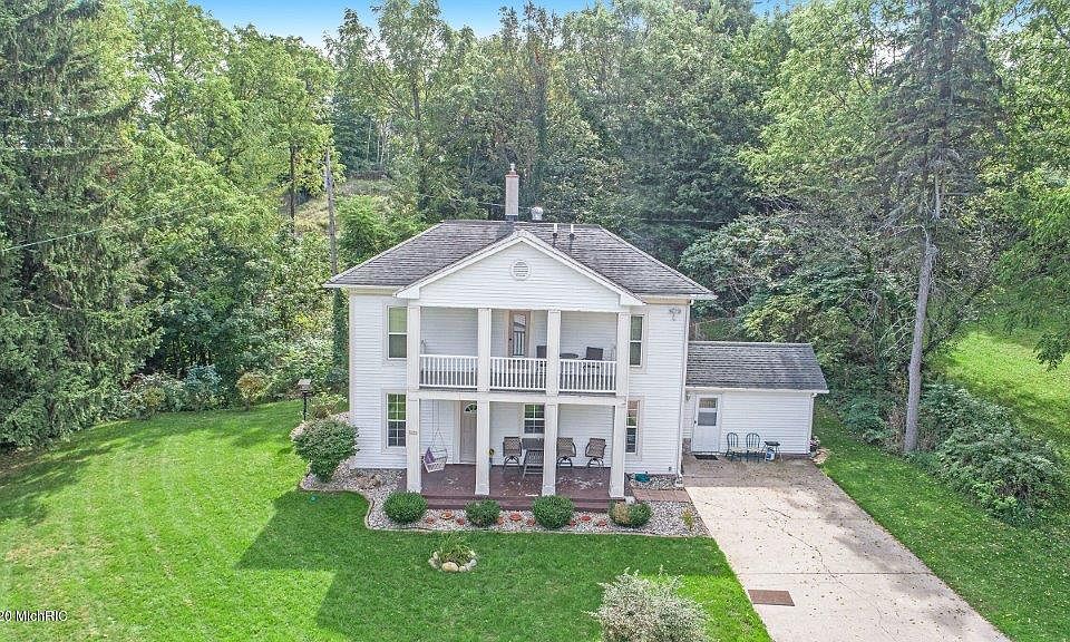 Country Charmer! This lovely, well maintained home sits on 2 acres with a storage shed and large 30x40 garage w/ second story. Covered front porch opens to the spacious living room with original hardwood floors and large windows for great natural light. Kitchen with island and dining area open to the convenient large mud room entry way. Main floor full bath and a den/office area complete the first floor. Upstairs are 4 bedrooms, full bath, and inviting covered balcony. Basement offers storage and laundry room - very neat and clean with Ayers Dry basement system installed (with warranty). Other updates include newer windows, siding, roof shingles, and mechanicals. Centrally located to Pentwater, Hart, Ludington & Scottville. A MUST SEE home. Buyer to verify all info/sq ft.