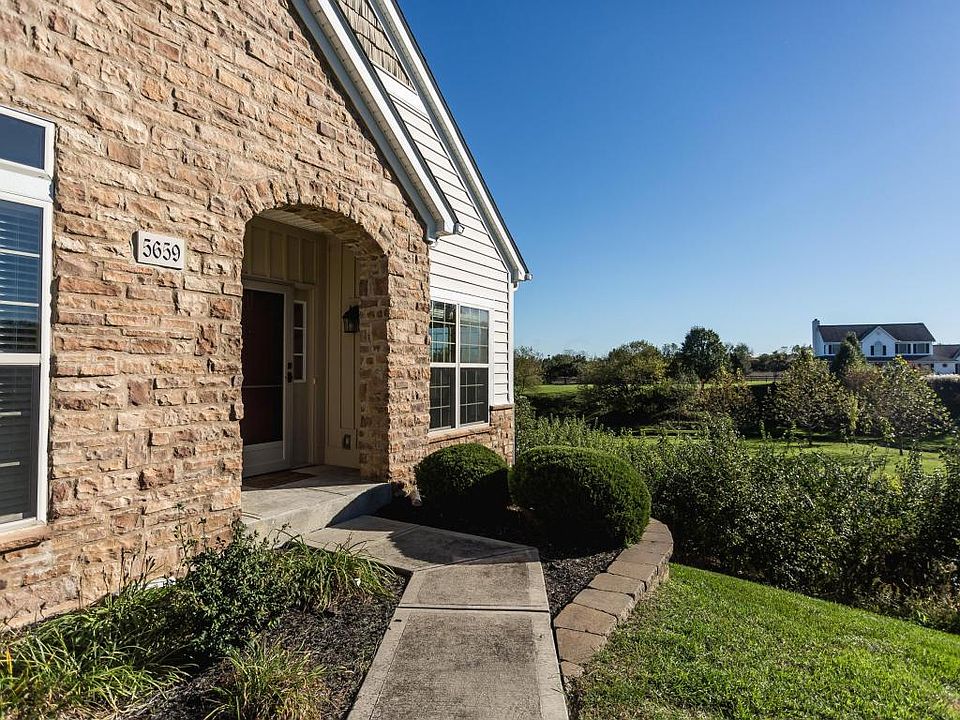 Totally incredible 2 story 3 bed/3 bath custom condo of stone & vinyl! 1st floor owner suite & 1st floor laundry! Sunroom w/cathedral ceilings & full stone wrapped 2-sided fireplace into great room! Gourmet kitchen w/stainless, granite & breakfast bar! Dining area-perfect for any size table with access to patio! Dramatic great room w/soaring ceilings & walls of windows with stunning views of Hayden Run Preserve! Large Den with attached full bath & built in bookcase! Owner suite with sumptuous bath & shower & lg walk in closet! Finished lower level has 2 bed/1 full bath & custom built wet bar, wine cooler, microwave & mini fridge. Large egress windows with stunning views! Columbus taxes! Clubhouse, fitness & pool. Much more! Close to everything!