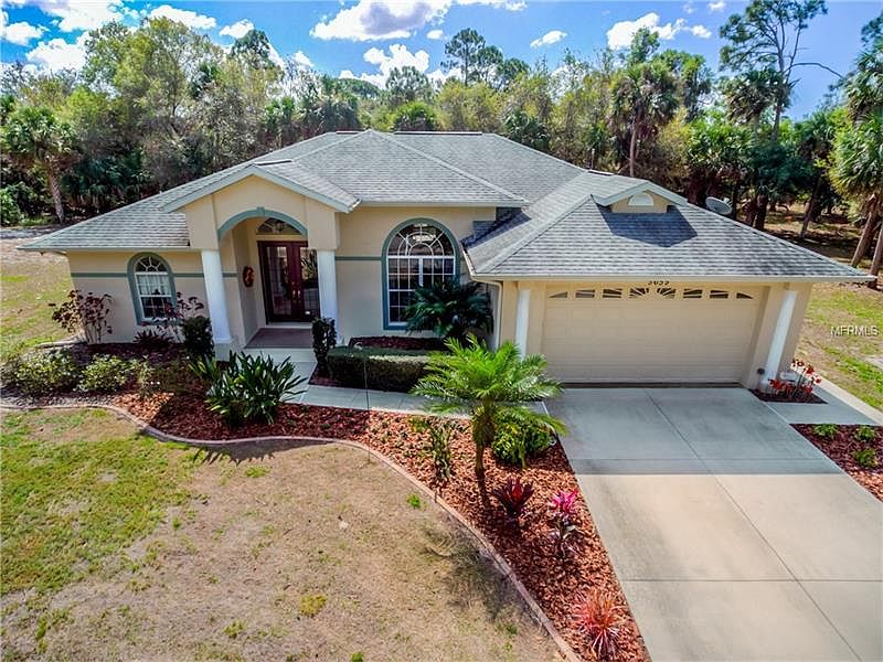 WOW! GORGEOUS POOL HOME ON 1 ACRE OF LAND! Custom built 3 bed, 2 bath home in a quaint area of North Port. Here's your chance to own one of the best built homes in the area. This bright beautiful home is Florida living at it's finest. EXCEPTIONAL craftsmanship to say the least. Open floor plan layout with vaulted ceilings, and expansive views throughout. Some features include, 42" oak cabinetry with solid surface countertops, stainless steel appliances including new refrigerator, new dishwasher, new range, new microwave, newer hot water heater, newer well pump, newer water treatment system, newer in-sink garbage disposal, new roof, New Hi-Efficiency Central AC system, New Pool Heater, walk-in closets in the master & in the guest bedrooms, central vacuum system, radiant barrier in the attic, PGT double pane tinted windows, PGT sliding glass doors, New Lanai Screens, updated front landscaping & salt pool to name a few. This home was built for energy SAVINGS and hurricane SAFETY in mind. Whether you're looking to relax or entertain this home offers endless possibilities. A truly breathtaking quality built home. Schedule a private viewing today! See virtual tour link for Live 3D tour and floor schematic.