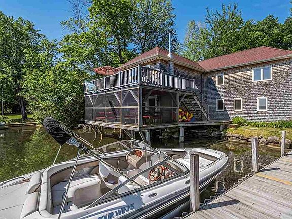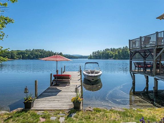 Tilton, NH 03276 - Built right on the water over an existing and still in use boathouse you can not get closer to the water! The home is energy efficient and is in mint condition. The views of the Belknaps are gorgeous and with over 140 ft of frontage on Lake Winnisquam and located on over an acre of land you have a nice sense of privacy. The locations is perfect for swimming, kayaking or paddle boarding! The outside living is spectacular! Take in the views from your private patio, or your large screened porch. Sit on the spacious deck to grab some sun or the large cribbed dock offering deep water docking. A small beach to put in the canoes or kayaks is a plus! There is also an outdoor hot tub with an outdoor shower as well! The home is built on top of an existing boathouse where you can conveniently store your canoes, kayaks or jet skis and keep them from the elements. The interior of the home is beautiful and there are lake views from every room! For those cold nights there is a woodstove! This special property also offers natural gas, public sewer & coming this summer city water. There is one car garage attached and a great cedar closet for storage. Plenty of paved parking as well a nice shed for additional storage. Tired of the traffic? The best part of this amazing property is that it is only an hour and half from Boston. 10 minutes from Rt 93. This spectacular property literally offers it all! Come take a tour!