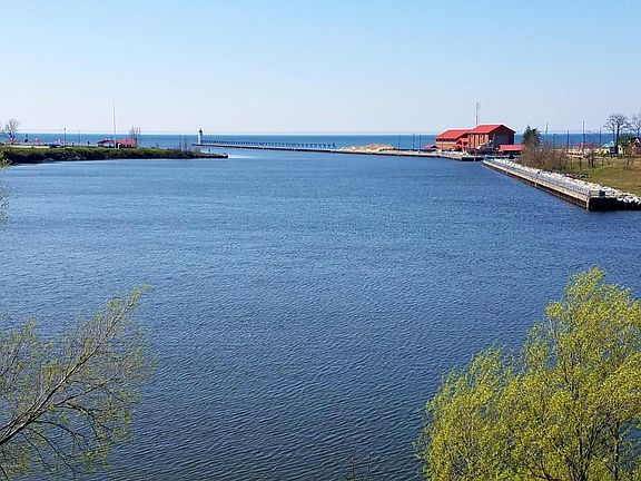 Awesome views of Lake Michigan from this one of a kind property on Manistee Harbor where you can watch the freighters come in and out in the summer and enjoy the magnificent sunsets from your own back yard. The home is just steps down to the river walk where you can take a stroll down to 1st street beach or downtown Manistee.