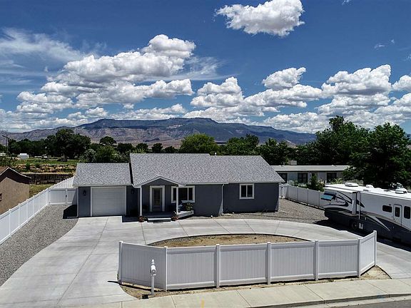 Horse property! EVERYTHING NEW FROM FOUNDATION TO ROOF. New elec. 200 amp, windows, over sized finished garage, cabinets, ceiling fans-3 ,mounted Sanyo smart TV's , custom front door $3,000, round about driveway, double gates on both sides for easy access to back for toys ,new white vinyl fence, granite counter tops,central air & heat,on demand hot water ,stackable washer and dryer, 2nd refrigerator in garage included, just too many things to tell about. The views of Grand Mesa and Mt. Garfield couldn't get better from the great room and patio. Complete RV station with elec.,water,sewer,& cable. 356 sq.ft. of storage/workshop with power. Buyer to verify all facts. Irrigation is $75.00 dollars a year paid in the taxes. Possible 100 % financing.