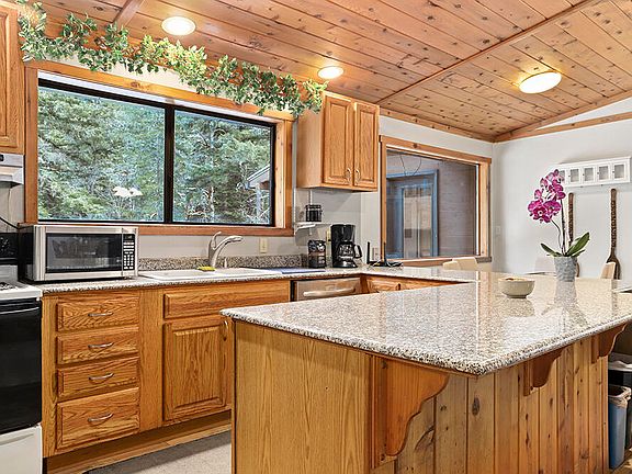 - Breakfast Bar, Fiberglass Stall Shower, Granite Counters, Linen Closet, Pantry, Primary Downstairs, Shower/Tub Combo, Tile Counters, Tile Shower, Vaulted Ceiling(s), Walk-In Closet(s), Wired for Sound