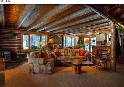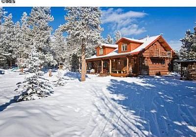 Step into this warm and inviting quintessential log Colorado dream home with spectacular open floor plan: large open living, dining room & kitchen. First floor master with full bath and main floor laundry. Upper level family room, w 1 bed, a studdy & 3/4 bath, 2 walk out balconies & lots of hidden storage. Flat wooded private fully fenced and gated lot. Hot tub and fire pit. Storage shed & Wood shed. 2 Bed Septic. Paved access 30 minutes to Boulder, Golden, Interlocken or Denver. Must see!