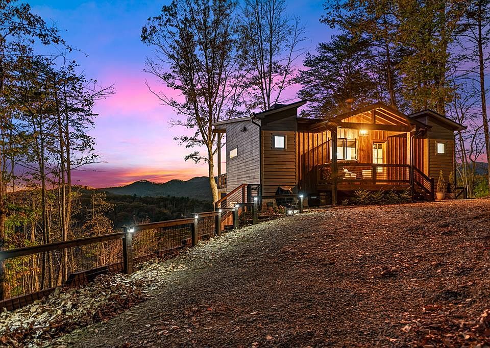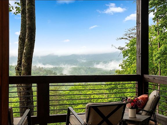 Ranked among the finest rentals in Blue Ridge with nothing but 5 star reviews! Just listed on the rental program in February, this exquisite cabin has already generated 80k+ and is poised for even greater success as its popularity continues to soar! The open floor plan perfectly complements the breathtaking views of the multi-layered mountain ranges while the cabin showcases a modern mountain design, with high-end appliances and elegant, high end furnishings that elevate your experience. You'll appreciate the beautiful rough-sawn hardwood floors that flow throughout the main level, accentuated by tasteful wood details that invoke the rustic charm of mountain living. Gather around the cozy indoor fireplace or retreat outdoors to the inviting outdoor fireplace, where you can soak in the stunning vista. The main-level primary en-suite is a true sanctuary, featuring direct access to the outdoor deck, perfect for enjoying morning coffee amidst a picturesque backdrop of nature. The thoughtfully designed kitchen boasts ample counter space and a convenient butler's pantry that serves as an ideal coffee bar. Hosting friends and family will be a delight with a dining area accommodating up to six guests. Descend to the lower level, where relaxation takes center stage. This inviting space is complemented by 12' ceilings and includes a second fireplace, a comfortable sitting area, and a desk for those needing to stay connected. Two additional en-suites provide guests with their own private retreats, ensuring comfort and privacy. Literally every room in this cabin has an impressive mountain view! Unwind in the luxurious hot tub while enjoying the surrounding views. With a fenced-in area perfect for pets, this cabin seamlessly combines comfort and functionality. Conveniently located just 5 miles from Downtown Blue Ridge, you'll be close to the activities & attractions that make this area a beloved destination! AVAILABLE TO SHOW SATURDAY & SUNDAY.