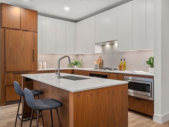 Welcome home! The Residences At 566, a collection of 66 new construction homes offering the finest finishes and design features, representing the height of turn-key sophistication that embraces active living and health. This courtyard facing home offers approx 1130SF of exquisite proportions and flow with 2 beds, 2 baths, private deck, custom two-tone kitchen with top-of-the-line integrated appliances, quartz countertops, spa-inspired bathrooms, and 1 garage parking space. The Residences at 566 prioritize a contemporary desire for active living, health, and technology and will enjoy a state-of-the-art fitness center, highlighted by an outdoor gym area and rooftop yoga deck. Revel in skyline views from the rooftop lounge featuring a sun deck, outdoor kitchen, dining areas, and gas fireplace. Additional amenities include a concierge, pet spa, herb garden, bike storage, touchless elevators, and separate HVAC units.