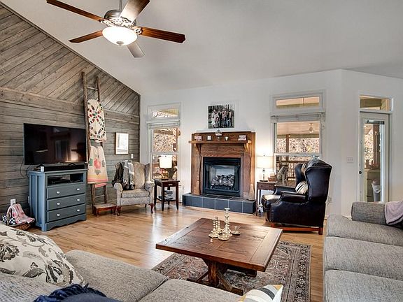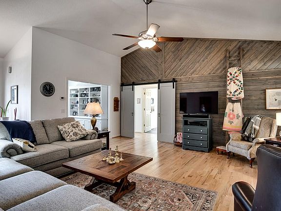 OPEN HOUSE SATURDAY 2/19/22: 10:30AM-1PM. Paved to the door with a circular drive, 2 car garage & three different ways to enter this home. The main level boasts character from the moment you walk inside: vaulted ceilings, tongue & groove accent wall, wood flooring & beautiful barn door just to name a few. Living room opens to the office, guest bedrooms w/full bath, kitchen & access to a large entertainment deck. Custom gourmet kitchen w/granite countertops, butcher block island, SS appliances and cherry cabinets. Master suite is privately tucked away with a huge walk- in closet & glorious en-suite bath including a soaking tub, ceramic tile shower & dual vanities. The outdoor space of this home is amazing. Raised garden, flower beds and fenced in yard. Enjoy the seasons outside on the large covered entertainment deck that is super private. Ample space for friends & family with lots of seating to catch the big game on the outdoor TV while grilling some burgers. Have them spend the night downstairs in the guest suite with additional living quarters (2 rooms/full bath) partial kitchen, game room, lower terrace, workshop and huge storage area. 2 great choices for high speed internet.