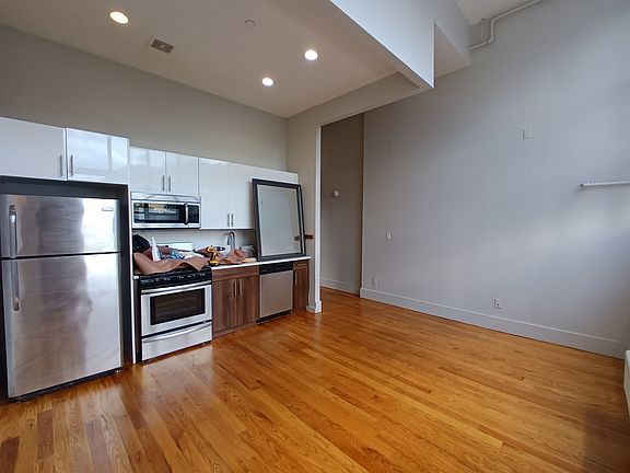 *Factory converted 1 bedroom + home office/walk in closet/1 bath NO FEE NW facing apartment AVAILABLE NOW at 566 Dekalb Ave. Large factory windows, tall ceilings, lots of closet space, full sized bath, wooden floors, open plan living, with a cool industrial feel. Walking distance to G Bedford-Nostrand stop, great amenities, caring landlord, responsive super and wonderful community in vibrant Bed-Stuy.* *Apartment* The apartment is located on the ground floor of an elevator building, offers hardwood floors throughout, 18ft ceilings, large factory windows, full size bathroom and kitchen w/large appliances (gas stove), large storage closets, open plan living area, medium sized bedroom with built-in closet, second small sized room can be used as a home office or walk in closet. Building is Pet friendly, offering a variety of fun 24/7 amenities included in price. *Measurements* Living/kitchen 11'7" x 15'9" Bedroom 8' x 11'5" *Amenities* The building is a converted textile factory fully renovated with an industrial feel, high ceilings, big windows and amazing 24/7 amenities including: Live-in super Gym & yoga room Secure bike room Lounge room with big flat screen TV, pool table and office area In-house laundry Movie room Pet friendly (no pet fee) Package room 2 separate furnished roof top with city views & community gardens (grow your own food) Parking available at $275/month A friendly community *Location* Located within walking distance to shops, supermarkets, cafes, restaurants, parks and PRATT. G train is only 1 block away, Bedford/Nostrand stop so easy access to Williamsburg, LIC & Midtown or across Brooklyn. A/C train is a 15min walk or 8min bus ride away, Nostrand stop for express access to the Manhattan. B38 stops right out front on Dekalb Ave taking you straight to Downtown Brooklyn. Close to parks, 15 minutes walk to Pratt, 10 minutes by bike, 15 minutes by train/bus to Fort Green, Downtown Brooklyn, BAM, Atlantic Mall and Terminal (LIRR). Prospect park, Brooklyn Museum and Brooklyn Botanic Garden only 15 minutes by bike! International and local students welcomed. Great location for Pratt students. Message me for more details and/or to organize an in person or virtual tour. This is a great apartment with the best landlord in Brooklyn!