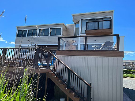 Two story newly renovated contemporary home with four bedroom, two and a half baths and large eat in kitchen with new stainless appliances and breakfast nook. Newly constructed deck with beautiful view of Moriches Bay. Large 525' catwalk with direct access to Moriches Bay and private beach area.