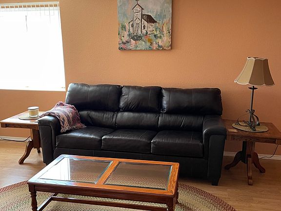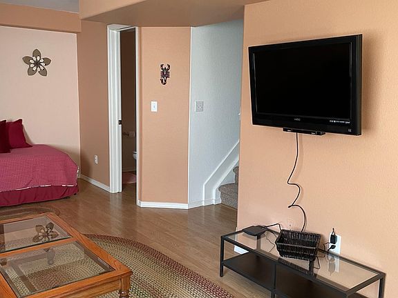 Completely separate; Beautiful, fully furnished, walk-in one bedroom basement apartment with single car garage and large fenced backyard (dog considered). Nice, quiet neighborhood close to I-25, Boulder & Hwy 66. Large master bedroom with full bathroom. Large living room with 1/2 bathroom, sleeper sofa & daybed. Dishwasher, washer/dryer & cast iron gas heater. Small kitchen with 4 chair dining table. Rent includes all utilities, plus cable TV, streaming channels & free internet. Includes a single car garage. Month to month rental with 30 day notice. Prefer 3-6 months. A non-refundable cleaning & pet deposit of $300.