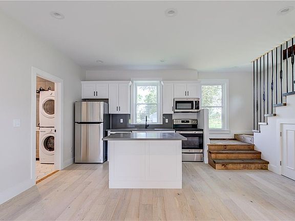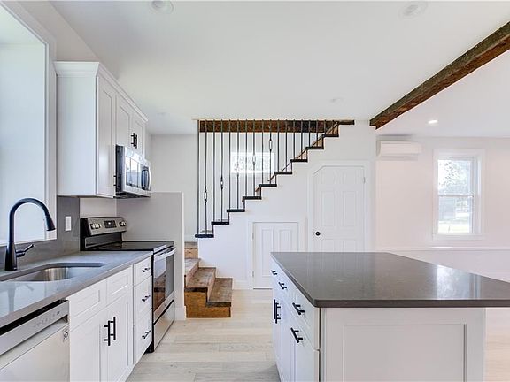 YEARLY RENTAL This beautifully renovated one-bedroom, one-and-a-half-bath home combines modern comfort with classic charm. The open floor plan features an inviting living area that flows into a stylish kitchen, complete with stainless-steel appliances, a spacious island, and ample cabinetry. A full bathroom on the main level adds convenience. Upstairs, the loft-style bedroom with an en-suite half bath offers a private retreat. Additional highlights include efficient gas heating, central air conditioning, and a full-sized in-unit laundry. Outside, enjoy your own private outdoor space. Quietly set back from the main road, this home offers both privacy and accessibility, with easy proximity to NAVSTA, Newport, beautiful beaches, and local shopping. A perfect place to call home year-round.
