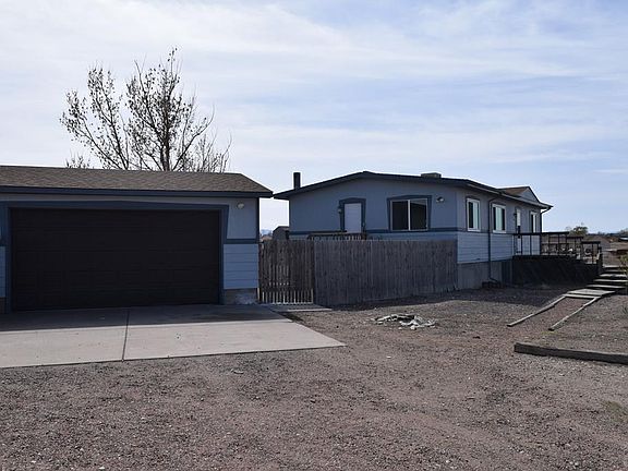 Manufactured home in Pueblo West with 4 bedrooms and 2 baths on 1.19 acres. Home features 2 bedrooms, a full bath and half bath in the laundry room, kitchen and dining room, all on the main level, with new vinyl windows. There are 2 bedrooms in the basement with a family room and a storage room as well. Also, an over sized 2 car detached garage, and sits on corner lot.