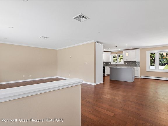 Find tranquility in this 4BR/2.5BA home featuring an on-suite bedroom in the basement, ideal for guests. With a large finished basement, updated open-concept kitchen, new floors, and a secluded backyard, it offers comfort and style. The 2-car garage, spacious shed, sunroom, and bay windows add to its appeal. Conveniently located on a straight road to the ferry and just 10 minutes from the train, it's perfect for those seeking accessibility and elegance.