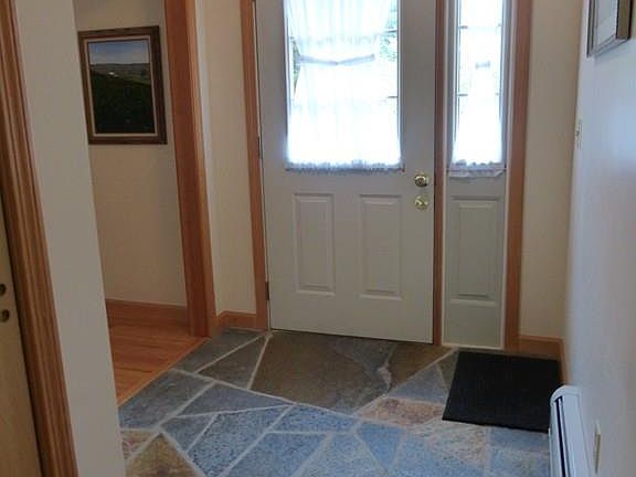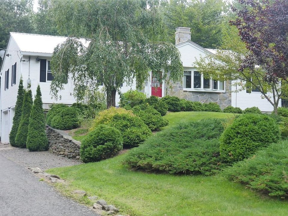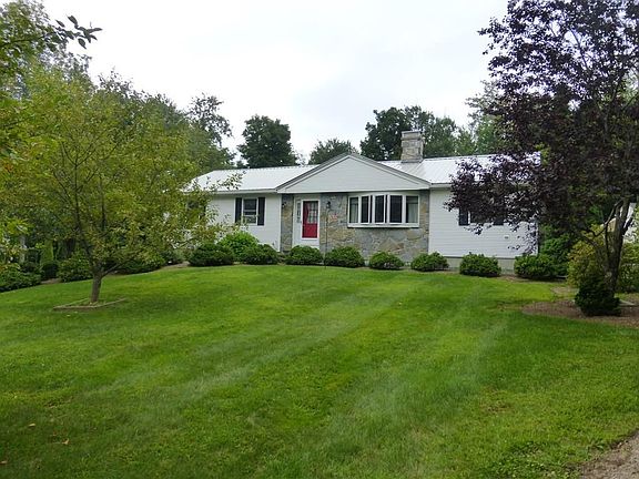 Beautifully landscaped and extremely well cared for, quality built, one level living across from DAR State Forest in Goshen. Gleaming oak floors, large living spaces, Anderson windows, new metal roof and Buderus heating and hot water system. Hike, kayak, swim, snowshoe or x-country ski right across the street. This 3 BR, 2 Bath home is landscaped with Goshen stone walls, patio & walkways. 1/2 acre of backyard is fenced with established gardens for flowers and vegetables. Garden shed has starter green house. Enjoy the fire pit and all the wildlife that abounds while you sit on the goshen stone patio. From the back patio enter the glass sliding door which leads into the open floor plan with DR, kitchen w/oak cabinetry, and LR w/goshen stone FP and bay window. Hardwood floors in LR, DR, hall and BR's. Master BR bath and full guest bath. Goshen stone stairs and walkway lead to the front entrance w/goshen stone entry foyer. 2-car garage under and large basement, laundry and extra storage.