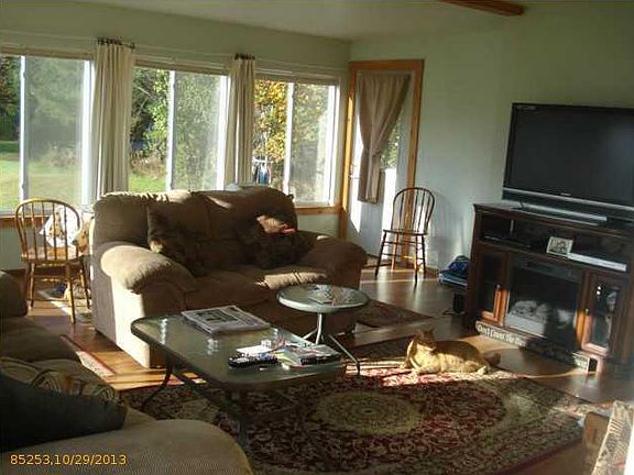 Great starter home. 2 BR on the outskirts of town, lots of updates, metal roof, windows, septic, siding, add'n finished off LR/breakfast nook, new kitchen cabinets, fireplace in BR, full walkout basement, landscaping, back deck on 0.34 AC w/garden space.