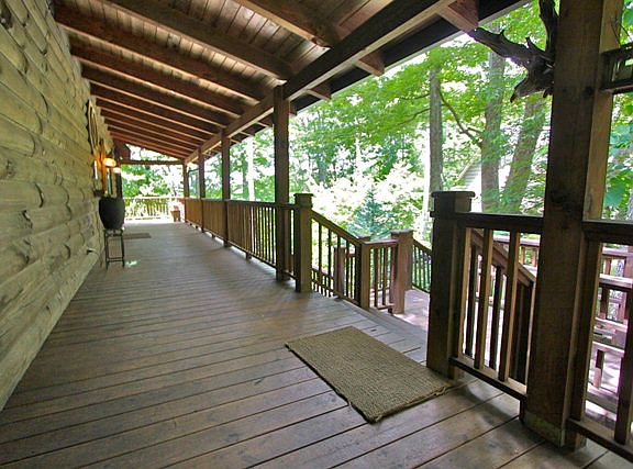 Perfect Mountain Getaway! This 3 bedroom 3.5 bath log home is nestled in Fox Den subdivision, in a great location between Boone and Blowing Rock and close to the ski slopes!! Large wrap-around open and screened in decks create the perfect spots to relax and enjoy the mountain air! Enjoy mountain views from wooded privacy! A tastefully decorated and renovated indoors includes a spacious kitchen and dining area, double sided stone fireplace, cathedral ceilings with loft/office, master suite on the main floor, and extra office/room downstairs!
