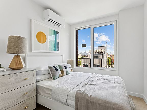 Immediate occupancy. Experience Modern Comfort in 566 Grand's Stylish Three-Bedroom Units Be among the first to visit our last available three-bedroom, unit #7C, a sophisticated three-bedroom / two-bath home at 566 Grand Street, Williamsburg's newest boutique rental development. Bathed in natural light through oversized windows, the open design of the living and dining area provides ample space for both relaxing and entertaining. The open kitchen offers a continuous flow and loft-like experience with separate dining area and connection to the living room. The kitchen has generous cabinet and counter space for those who love to cook and entertain. The living room and bedroom closets, offer ample hanging space. The primary bedroom has an en-suite bathroom and can easily accommodate a queen-size bed, offering a cozy and spacious retreat. Bedroom closets are equipped with custom shelving systems to maximize storage and organization. Second and third bedrooms are steps away from the second bathroom and each has its own ample closet space. Located on vibrant Grand Street, 566 Grand offers an intimate living experience amidst the dynamic Williamsburg neighborhood. Whether staying in or exploring the local scene, you'll have the perfect space to stretch out and relax at home or venture out to discover your new favorite neighborhood spots. All homes feature sound-attenuated windows, in-unit washer and dryer and a stainless-steel appliance package. The kitchens are equipped with custom cabinetry, complemented by Pure White Caesarstone countertops. Bathrooms are condo-quality, offering deep soaking tubs, with custom vanities providing generous storage space. Every room comes with preinstalled solar shades, ensuring these apartments are truly move-in ready. Amenities Include: - Fitness center - Private resident courtyard - Resident lounge w/private and group work-stations - Roof deck with grilling stations, tanning lounges, group seating and outdoor shower - Private storage cages - Bike storage *Renderings and/or photos may not be of the actual unit and are for illustrative purposes only.