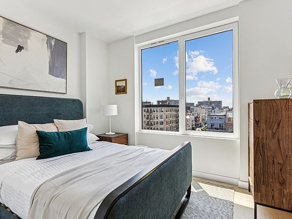 Immediate occupancy available. Experience Modern Comfort in 566 Grand's Stylish One-Bedroom Units Be among the first to visit unit #PHB, a sophisticated one-bedroom / one-bath home easily flexed into a two-bedroom / one-bath home with two separate bedrooms and a gracious living room at 566 Grand Street, Williamsburg's newest boutique rental development. Bathed in natural light through oversized windows, the open design of the living and dining area provides ample space for both relaxing and entertaining. The open kitchen offers a continuous flow and loft-like experience with its connection to the living room. The kitchen has generous cabinet and counter space for those who love to cook and entertain. A unique feature, #PHB has a spacious private balcony perfect for outdoor seating and lounging. Whether entertaining guests with an al fresco meal or enjoying a cup of coffee, you can bring the comforts of the outside to your home. The living room and bedroom closets, offer ample hanging space, and the bedroom can easily accommodate a queen-size bed, offering a cozy and spacious retreat. Bedroom closets are equipped with custom shelving systems to maximize storage and organization. Located on vibrant Grand Street, 566 Grand offers an intimate living experience amidst the dynamic Williamsburg neighborhood. Whether staying in or exploring the local scene, you'll have the perfect space to stretch out and relax at home or venture out to discover your new favorite neighborhood spots. All homes feature sound-attenuated windows, in-unit washer and dryer and a stainless-steel appliance package. The kitchens are equipped with custom cabinetry, complemented by Pure White Caesarstone countertops. Bathrooms are condo-quality, offering deep soaking tubs, with custom vanities providing generous storage space. Every room comes with preinstalled solar shades, ensuring these apartments are truly move-in ready. Amenities Include: - Fitness center - Private resident courtyard - Resident lounge w/private and group work-stations - Roof deck with grilling stations, tanning lounges, group seating and outdoor shower - Private storage cages - Bike storage *Renderings and/or photos may not be of the actual unit and are for illustrative purposes only.