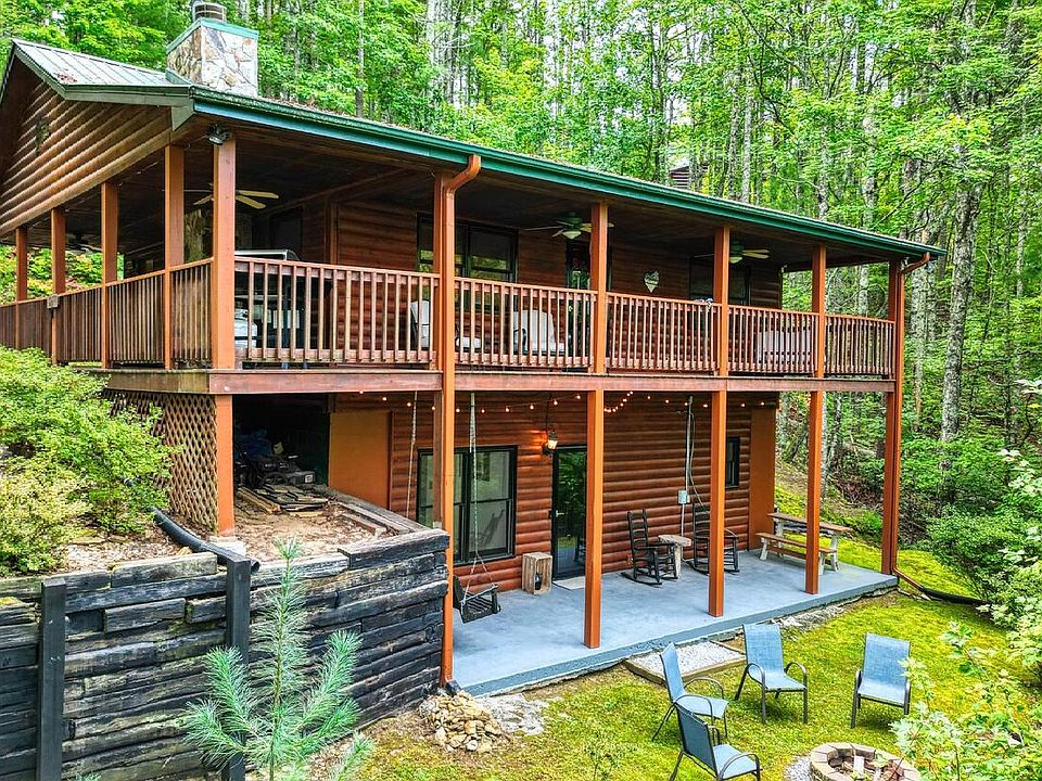 Private mountain top log cabin with mountain views that offers tranquility and serenity from the hustle and bustle of city life. This home is nestled on 2.95 acres tucked away for privacy yet less than 10 minutes to Blue Ridge. Home has been very well maintained & offers 3 bedrooms 2 baths, bonus room/bunk room for additional guest room. Finished basement has media room/game room for family fun. Enjoy time on the main level covered porch with great mountain views or retreat to the lower level porch already set up ready for hot tub. sold fully furnished with the exception of a few personal items.Come Home to North Georgia!!!