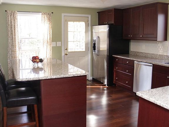 Fully updated gambrel set far back off of Main St. All new, 2 zone central A/C and hydro-air, ultra high efficiency heating system and on-demand hot water. Brand new windows. Very private expanded yard surrounded by lots of all trees. Two new bathrooms and kitchen. Lots of space to entertain.