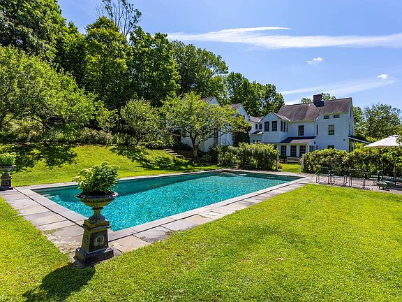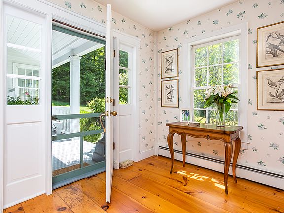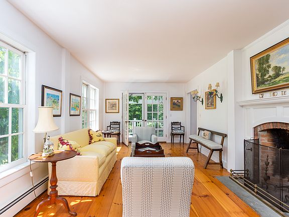 Situated in the historic district of Milton on almost seven glorious acres, this uniquely designed colonial was created by a local architect. Majestically set up on a hill on a beautifully landscaped tiered lot, this one of a kind home features wide board flooring along with multiple level living spaces. Features include a chef's kitchen with Wolf gas cook top, Subzero refrigerator Thermador wall ovens, large island and spacious dining area; family room with wood burning fireplace; garden room with brick flooring and a wall of windows; formal dining room; formal living room with wood burning fireplace and French doors that lead to the large deck with views of the property; quiet study with bookcases and fireplace; sun room with painted wood floor and soaring ceiling; extensive mud room with second staircase to the upper level. The upper level is comprised of a romantic master bedroom suite with wood burning fireplace, walk-in closet, and spa bathroom with whirlpool tub and steam shower; 3 guest bedrooms with wall to wall carpeting, bookshelves and a full bath; sun-filled bonus/exercise room with multiple window seats, recessed lighting, ceiling fans and full bath; finished attic with full bath. A timber frame barn, inground pool, stonewalls, apple trees, raspberry and blueberry bushes complete this delightful property.