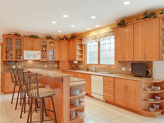 Amazing architecural details in this all brick residence on Cul-de-sac backs to a park/forest preserve. Grand entrance w/ soaring ceilings & dual stairs. Oversized gourmet kitchen w/ granite countertops & island & 2 fridges & 2 pantries.Two story fam room with wall of windows w/ brick FP & wetbar. Master bath w/ Jacuzzi & walk in closet. Hardwood floors flow throughout most of the house. Full finished bsmt w/handcrafted wet bar,inlaw bdrm, kitchen & bath. Custom details such as vaulted ceilings, crown molding, central vac, intercom system, zoned heat/AC, paver brick patio & custom shed. Spacious 4 car garage and plenty of storage.