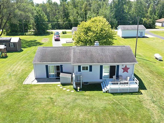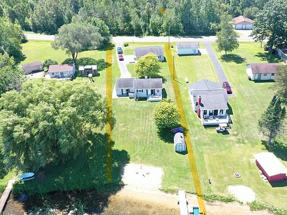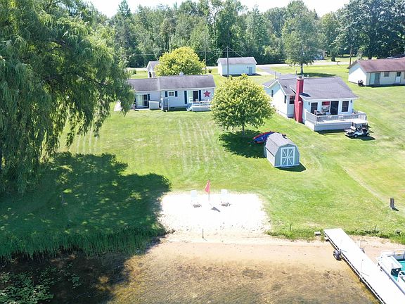 2 BEDROOM APPROX. 1065 SQ. FT. LAKEFRONT HOME with additional sleeping quarters in detached garage on 200 acre all-sports West Londo Lake! Home has been very well maintained and features a large (approx. 480 sq. ft.) living room, a large detached garage with covered porch and an approximately 215 sq. ft. finished room for additional guests, a paved driveway, an outdoor shower, and 72 ft. of sandy frontage with beach area on the lake.