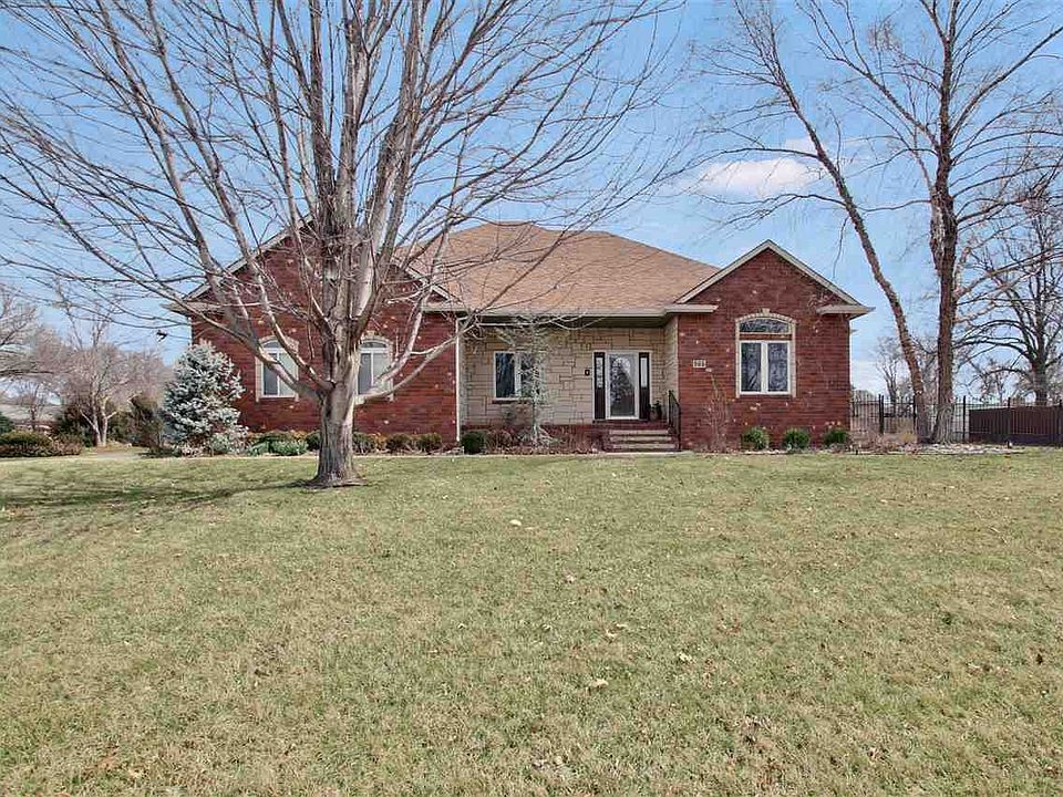 This stunning home has it all! Located on a half-acre lot which features a detached oversized two car garage (35 x 24) with heat, attic fan, workbench, half bath, sink, and built-in speakers, tool wall, overhead lights, 220 hookups, overhead power, cable hookup, insulated door, fully sheet rocked, and a covered patio attached. In addition, you still have the attached oversized two car garage! This home is conveniently located in Andover Schools with Wichita taxes. A bonus is it's just a few minutes' walk from Terradyne's driving range, if you like to golf! When you first arrive to the home you are greeted with a welcoming front covered porch. When you walk through the front door, you will notice that the entire first floor opens into an open floor plan that will be fantastic for entertaining. You will love spending time in this fabulous home that is complete with hardwood floors, living room with gas fireplace and an amazing number of built-ins, double depth granite countertops in the kitchen, great openness for easy entertaining, wired for surround sound throughout, light and bright kitchen with breakfast bar, great counter and cabinet space, informal and formal dining rooms, and split bedroom plan for your added privacy, pocket doors throughout the entire home, a cedar closet (6'2â x 4'10â), lighted stairwell, recessed lighting, neutral paint colors for easy decorating, crown molding, built in security system, and so much more!. First floor rooms feature vaulted ceilings, while the basement features high ceilings, too. This kitchen is incredible with upscale stainless-steel appliances including a subzero refrigerator, Thermador oven and range, a GE microwave, and a spacious sink and a great walk in pantry. Spend peaceful nights in the spacious master suite with huge walk-in closet with built-ins, large windows to bring in the natural light, and private master bathroom with his and her sinks, walks-in shower with built-in seat, and extra cabinet space. The main floor laundry is conveniently located right off the master suite and kitchen and features tile flooring, cabinets, sinks, and a folding counter! Enjoy your morning cup of coffee and the daily newspaper out in the gorgeous sunroom which features large windows, ceiling fan, and built-in speakers, this is where everyone loves to spend time. The finished basement which features built-in speakers, extra large wet bar, the fourth bedroom, a full bathroom, ample storage space, and a bonus room that would make a great home office, kids play room, or hobby/craft room. You will love spending time in your peaceful fenced backyard with large patio areas, raised garden area, rain barrel system, covered patio, and lush landscaping! Some hard to find extras that this home also has are manifold water and gas systems, battery back-up sump pump system, sump pump cover, sprinkler system, irrigation well, high efficiency water heater, heat, and air conditioner, and concrete Harding board siding. Other details: Half bath is in detached garage/shop. 5th bedroom in basement does not have a closet. We also have drone footage of this amazing home if interested. Truly a home you do not want to miss out on! Take a look at both of our vitual tours, one bein the inside of the home, and the second with drone footage of the property! All information deemed reliable but not guaranteed