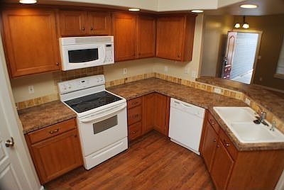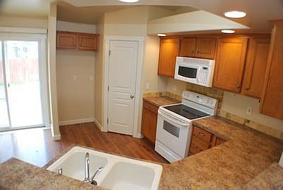 Property sits on a grassy corner lot in a great neighborhood. Enter into the vaulted main great room area where kitchen and dining overlook family area and separates well-appointed master suite on one side of house from other two bedrooms & full bathroom. Walk-in closet, large pantry, easy maintenance with wood-look vinyl flooring, granite-look counter tops and handsome tile accents. Indoor-outdoor dog kennel makes this an easy move-in for you and man's best friend!