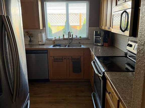 *Walking distance to RiverBend hospital (0.43 miles) and around the corner from restaurants, shopping and freeway access (I-5). Just a few miles from other hospitals in the area* Welcome to this stunning 3-bedroom, 2-bathroom home that perfectly blends comfort, functionality, and style. Nestled in a quiet, friendly neighborhood, this home offers spacious living areas, modern amenities, and thoughtful touches that make it ideal for families, professionals, or anyone who values space and natural light. Interior Features: Expansive Living Room: The heart of the home is a large, open-concept living area filled with natural light. A skylight overhead bathes the space in sunshine during the day, creating a warm and welcoming atmosphere. Bright Kitchen & Dining Area: The fully-equipped kitchen opens to the dining area, perfect for entertaining or family meals. Plenty of counter and cabinet space make cooking a joy. Primary Suite Retreat: The oversized primary bedroom offers a peaceful escape, featuring a huge walk-in closet and an elegant en suite bathroom with dual sinks and a spacious layout. Additional Bedrooms: Two additional bedrooms offer flexibility perfect for family, guests, or a home office. Two Full Bathrooms: Both bathrooms are tastefully designed, with the primary featuring double vanities and ample counter space. Pet-Friendly Features: A built-in dog door provides easy access for your furry friends to enjoy the outdoors safely and conveniently. All sizes and breeds welcome. Outdoor Living: A fully fenced backyard offers room to play or relax ideal for pets, gatherings, or just enjoying a quiet afternoon. Additional Perks: In-home laundry area located in the garage Attached 2 car garage and free street parking Conveniently located near hospitals, parks, shopping, restaurants and top-rated schools (Sheldon school district-4J)