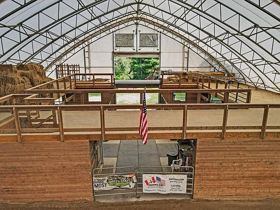 Rare find for Horse and Outdoor lovers! Turnkey equine facility or easily convert for large equipment or other hobbies. Located on 7.61+/- acres in tax friendly West Gardiner, this property is one of a kind. With miles of trails in the area, close to Pleasant Pond, which is highly renowned for Bass fishing tournaments. Set back from the road with a manageable size area complete with a farm pond and fruit trees you will not find another property that compares!The custom designed outbuilding is the centerpiece of the property and must be seen to truly be appreciated. Built for Maine weather and used as a 9 stall horse barn and indoor riding arena, this structure is comprised of 3 spacious and energy efficient sections. The 150' x 70' riding arena has quality footing and is bathed in natural light. The 40' x 70' section has 9 stalls, a heated tack area, generator hookup and frost free water hydrant and the 30' x 70' staging area at the front of is great for equipment or trailer storage. With a balcony overlooking the arena, this facility has hosted an array of events including equine clinics, dog agility competitions and other community events. The design of this building makes it easily adaptable for many uses. In addition to the main barn, there is an additional outbuilding with 4 stalls, tack room and frost free hydrant. Sizable paddocks with 5 run in shelters give this property instant income potential. The house! A classic brick sided Cape Cod with 3 bedrooms and 3 baths. At 2550 square feet it is the quintessential New England farm house, well appointed with modern updates and a warm interior of neutral tones and natural wood throughout. The master suite- with an oversized jet tub- exits to a balcony overlooking your picturesque homestead.