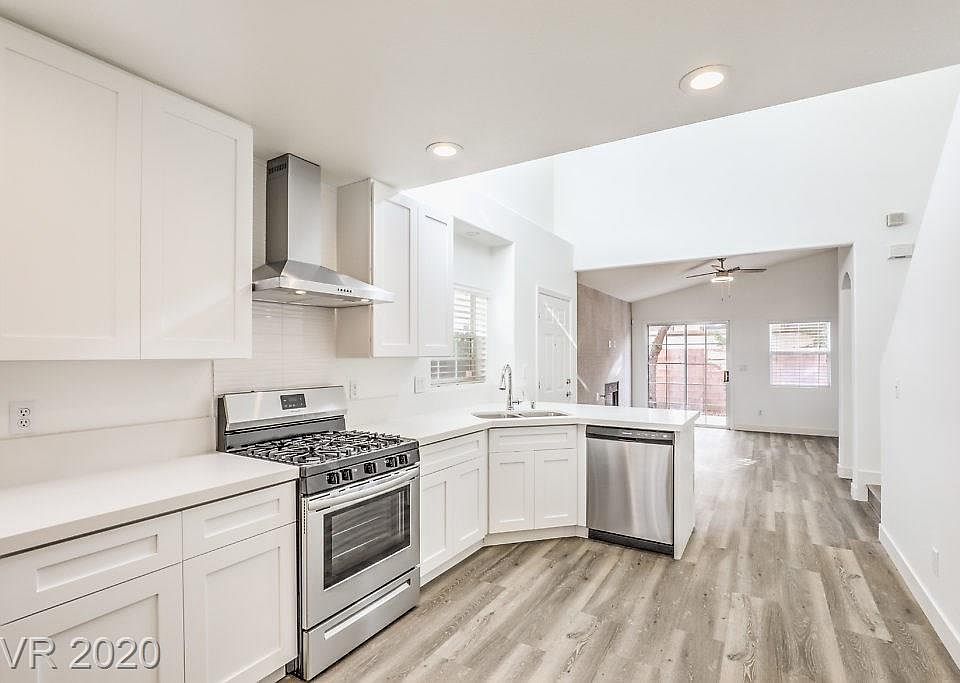 Beautifully Renovated Summerlin Home in a Gated Community! Down Stairs Master Bedroom! New White Shaker Cabinets, Quartz Countertops, Stainless Steel Appliances, Flooring and More! Zoned for some of the Best Schools in Las Vegas! Great Location near Downtown Summerlin, the Charleston Corridor, and the 215 freeway!