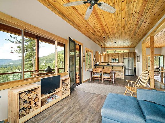 One special home located just north of Vallecito Lake. If you are looking for that one-of-a-kind property with live water, great views, privacy and San Juan National Forest access this is the place for you! This mountain modern home was masterfully built in 2016 by the owner/builder. Attention to detail and design is evident in this 1914 SF home. The home was designed to take advantage of the unobstructed Vallecito Lake views from the great room and the expansive decks. Large windows frame the southern and eastern sides of the home which bring the outdoors in. A wood burning fireplace in the living room is perfect to take the chill off in the cool spring mornings and keep the heating bills in check if you want to make this your full-time residence like the current owner. The kitchen is well-appointed with custom hickory cabinets, stainless steel appliances and granite countertops and bar seating. The great room has vaulted t&g pine ceilings giving it a classic mountain look. The large primary suite has a large walk-in closet, dual vanities and a walk-in tiled shower. Also, rounding out this level is a ½ bathroom for guest use and a large pantry. Downstairs features the second bedroom, a full bath, a large office (which could be a non-conforming 3rd bedroom), the laundry room and 1 car heated garage and workshop. The home has wood grain tile throughout for easy cleaning and maintenance. The tile is kept warm in the winter by the in floor radiant heat. Access to National Forest is right out the back door from a shared easement making this a great basecamp for hunting GMU 751 where Bull Elk Tags are issued over the counter and mule deer buck tags usually only take 2 to 3 preference points depending on the season. D Creek runs along the southern boundary of this parcel in your own little canyon and is a great flowing year-round creek with waterfalls and teaming with trout. The home is located less than 3 miles from the Vallecito Marina and a short 30-minute drive to Durango. The homeowners in this area banded together and installed an electric gate on Valley Heights Drive (private drive) creating even more privacy. No HOA or Covenants means short term rentals are allowed or you can make this your private year-round residence – either way you won’t be disappointed in this property.