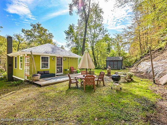 Welcome to the Sweet Pea, a jewel box of a home set back from the road on 1.8 acres with a stunning rock wall framing the private backyard deck and gardens. This house was carefully rebuilt from the studs in 2016 including roof, plumbing, electrical and mechanical systems (with on demand water heater), windows and doors, insulation, Hardieboard siding, and interior finishes, offering excellent energy efficiency and low maintenance living with municipal water and sewer. Vaulted ceilings and large windows in the central living space create an airy indoor/outdoor feel in a cozy package. The newer shed offers additional storage and a handsome focal point around which to garden and enjoy the grassy areas of the yard. Lot extends up the rock wall and back into woods bordered by the Snyder Estate, providing a unique opportunity for quiet enjoyment of the surrounding views, rock outcroppings, woodland flora and wildlife. This home is conveniently located a short jaunt to the Village of Rosendale and 22 miles of rail trail as well as the Trailways Bus Stop. It is perfectly located between quaint villages, farmsteads, orchards, exploring the Shawangunk Ridge, and all the amenities in the City of Kingston.