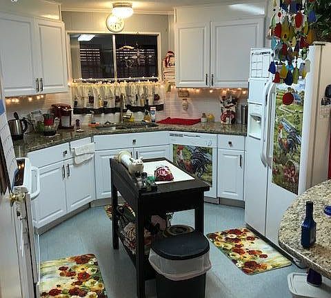 This Home is so Pretty inside ! This spacious kitchen is totally updated with new white cabinets, granite counter tops, and newer appliances. The Master bedroom is large and has private bathroom with large walk in closet. Second bedroom also has large walk in closet. Plenty of living space in this home and a huge front Florida room as a bonus space.Laundry room and storage area in carport. Did I mention you own your land in this 55+ development!Clubhouse and pool to use at your leisure.Call today for your showing .