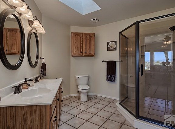 Wonderful bluff top home with dynamic, panoramic views spanning from the Sangre de Cristos to Pike's Peak. Gorgeous rancher with beautiful 50 year tile roof, meticulously maintained and upgraded throughout; new paint, windows, window coverings, light fixtures and flooring. Kitchen features granite countertops, downdraft range, double oven, wood flooring and tasteful backsplash. Bathrooms elegantly updated. The basement features huge rec room, tv room with built-in surround sound wiring, 2 huge bedrooms and laundry and bathroom. Allowing children or guests ample space and privacy. Enjoy this natural setting with giant junipers, pinion, cactus, mature landscaping and natural grass lawn. Attached oversized 900 sq ft 3 car insulated garage with windows allow for plenty of toys and storage. The 3 stall barn has fenced corral, tack room, water, electricity, & storage capability for 300 bales. Alternately barn could be used for 4th garage or additional storage.This house has many unique angles, architectural features and aesthetically pleasing drywall, lending a warm handcrafted feel throughout. Expansive bay windows in the master, living and dining rooms link the front courtyard and the enclosed back patio and their gardens. This gives the house a unique sense of light and space indoors, intimately in contact with nature and the great outdoors. Don't miss the combination of this outstanding private expansive property and beautifully appointed warm and spacious home.