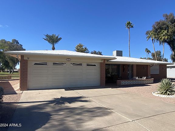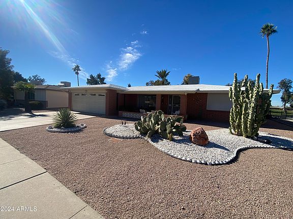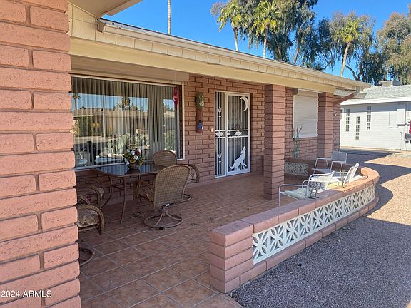This beautiful golf course property is a 600 model 2 bedroom 2 bath home in Sunland Village, a 55+ Community. East/west facing 1486 square foot home plus an additional 270 sq ft Arizona room addition. Pergola covered back patio perfect for watching the sunset over the golf course. Both bathrooms have been updated with tile floor and showers and tall countertops. Kitchen has lots of counter and cabinet space including a pantry. Added insulation. New HVAC in 2015. Roller shades all around provide added security and heat barrier. Sunland Village has many amenities, activities, events and clubs for all interests. Buyer pays one time $1750 Common Property Maintenance fee at closing.