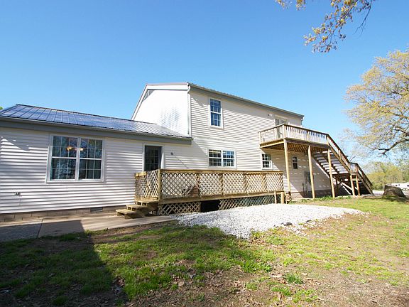 BEAUTIFUL SETTING on this 2-Story Farmhouse! Sitting on 8+ acres near the Woolum Access to the Buffalo River! This home has 3BR/2.5BA and sits on some fantastic pasture land w/ a great country setting on a paved road! Land boasts 2 nice ponds, one of which sits behind the home and is stocked with catfish & has wooden bridges built all the way around it! Nice 30'X50' metal outbuilding w/ electric ran to it, a concrete floor, & 4 garage doors! HUGE Master Bedroom w/ his & her closets and double doors that open up onto the deck over looking the stocked pond! The main floor has a large living room, big kitchen area, dedicated dining room, and a large Den or Rec Room! Kitchen opens to a TERRIFIC patio area that is perfect for grilling out and entertaining!
