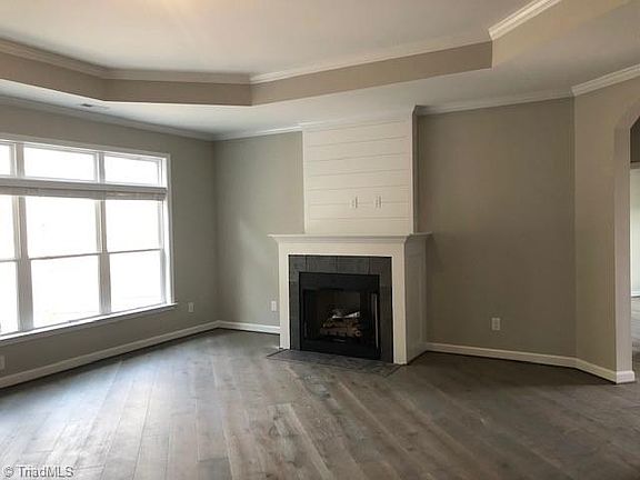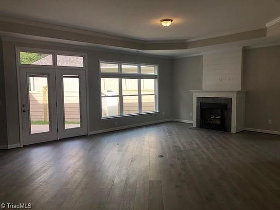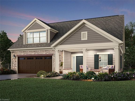 The Promenade III at the Courtyards at Harmon Mill! This spacious home features an open first floor and upstairs Bonus Suite! Luxurious owner's suite has been extended and opens on to the covered patio area, huge closet, and spa-style, tiled walk-in shower! The Kitchen, Dining, and Living Rooms provide views of the private courtyard. Owner's suite, 2nd, and 3rd BR are located on main lvl, plus large bonus suite that includes a 4th bedroom, LR, and full bath. Features include arched doorways, gas fireplace, painted cabinets with soft-close doors & drawers, granite kitchen countertops, under-cabinet lighting, huge walk-in pantry & KitchenAid SS appliances. Engineered hardwood flooring on main level. All lots have irrigation, and the HOA handles lawn care. The community will have sidewalks and a walking trail. Fantastic Kernersville location, close to shopping, dining, and minutes to I-40.