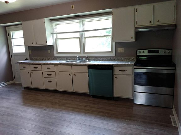 Central Air. Fenced in backyard. One car garage with driveway. Living room is 13x17. Kitchen is 16x13. Downstairs laundry/bath is 11x6'6". MBR has three closets and is 14x11. BR1 is 9x9'6". BR2 is 9x9'7". Upstairs bath is 11x5.
