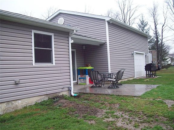 Price Reduced on this totally updated Ranch on quiet country setting but close to NYS Thruway between Buffalo and Rochester. New roof, siding, thermal windows, electric, plumbing and drywall throughout. Beautifully decorated and hardwood floors. Large 24 x 28 attached garage with radiant heated floors and high ceiling for a lift. Newer boiler, tankless hot water heater and Air Conditioning. Public water at the street. Basement is partially finished for playroom or family room. Stamped patio for outside entertaining. If you are looking for your first home or downsizing this ranch is the perfect fit for you! Sellers motivated! May qualify for 0% down financing!