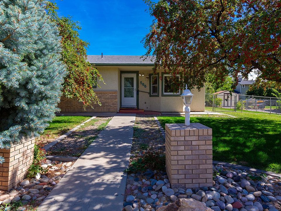 Wonderful corner lot with fully remodeled home. Refrigerated Air & Forced Air gas with humidifier, new windows, new paint throughout, new tile back splash with quartz counters, new tile flooring, new REAL wood flooring, and newer carpet in the bedrooms. Kitchen has all appliances including gas stove/cooktop. Garage is oversized with workshop that has tons of storage, heating & cooling and utility sink. Yard has two sheds, RV parking, sprinklers with irrigation water, and a plum, pear, apple, nectarine, and peach tree! Property is vacant and ready for you!