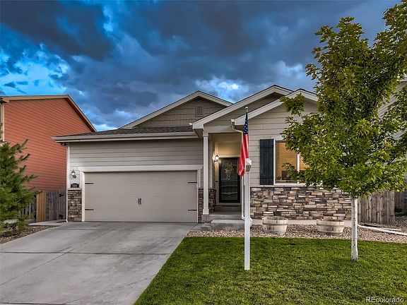 Welcome home!! A great-sized ranch-style home designed to fit your needs. As you walk in, notice the updated flooring carrying you into the main living area, which draws you into the heart of the house. The kitchen, living & dining all own their separate space while being adjoined, making the perfect gathering place for entertainment, conversations, loved ones, or a quick popcorn trip while watching your favorite movie. The kitchen boasts plenty of counter & cabinet space w/ a large farmhouse sink, gas stove, and a highly desired..... walk-in pantry. The living room is spacious, creating is own unique cozy environment your want from your living room. This home has 3 bedrooms, including the Primary bedroom w/ a primary bath & walk-in closet!! The backyard is low maintenance yet functional for the dogs, kids, and a poured concrete patio for the BBQ. The mudroom/separate laundry room welcomes you from the two-car garage. The location is a quick walk away from 1 of the community parks, a short distance away from I-76, King Soopers & Prarie center shopping/restaurants. Lochbuie has a lot of room for growth but gives off the sweet small-town feel.