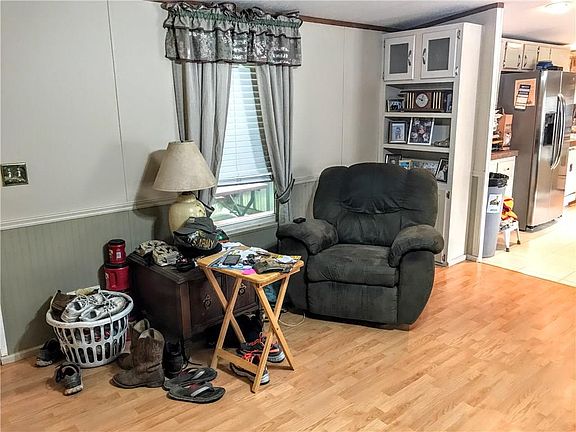 Outside of the city limits. Well kept home has attached 1 car garage and a detached 3 car carport. There is room for a horse or two. Current owners have one horse on property. Kitchen and living area is open so you can watch tv while you are making dinner. Master bedroom is separate from the other two bedrooms. Heavily wooded, so if you are looking for a place where you will have privacy and little traffic, this is it. Small deck on the back of home gives you room to enjoy the wildlife you will see out here. There is a wet weather creek that runs through the back of the property. All 2.915 acres completely fenced.